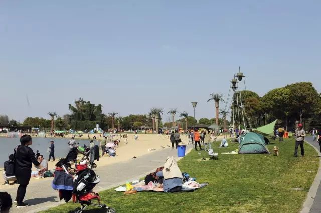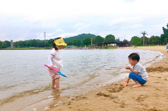 上海月湖雕塑公园的沙滩对假期来说最为适宜