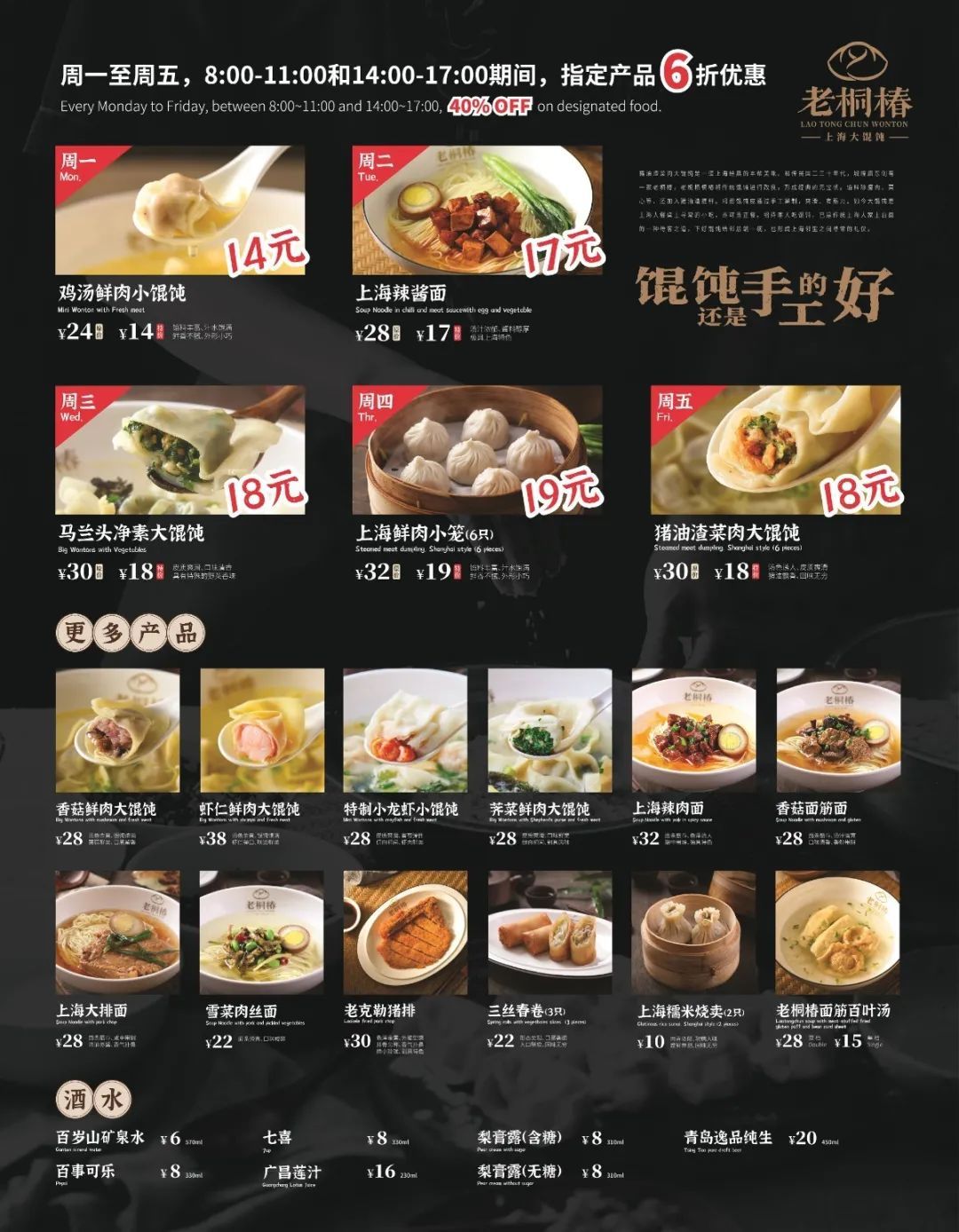 招牌猪油渣菜肉大馄饨、辣酱拌面、鲜肉小笼……