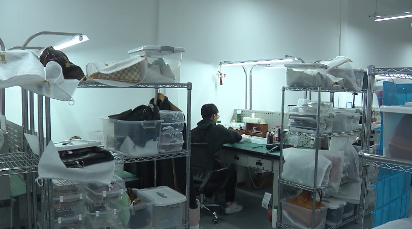 王女士告诉记者,明明边角擦伤、颜色也不算鲜亮的包,在师傅一双巧手下,缝制、补皮、上色,一会儿功夫就可以修复得完好如初。