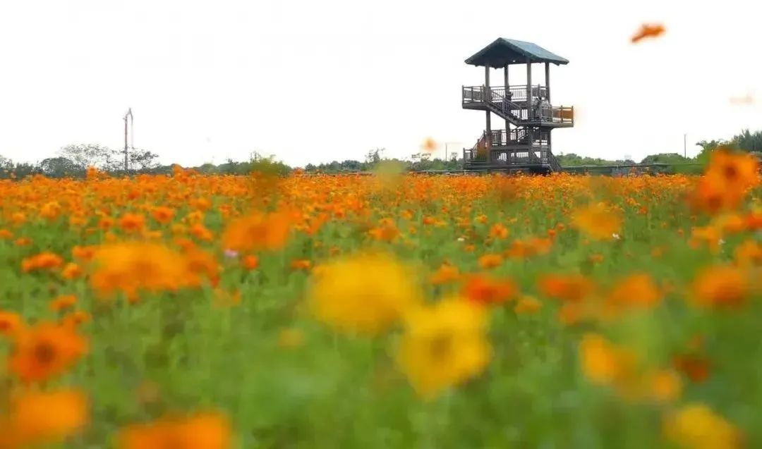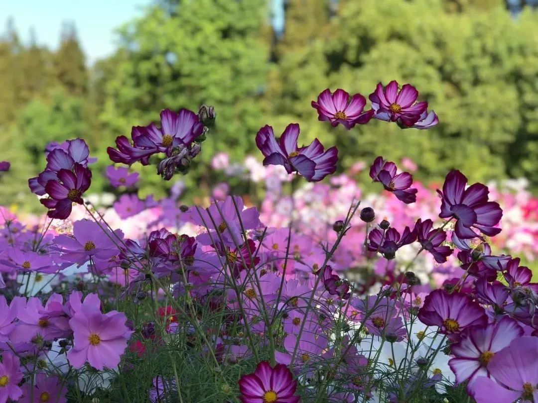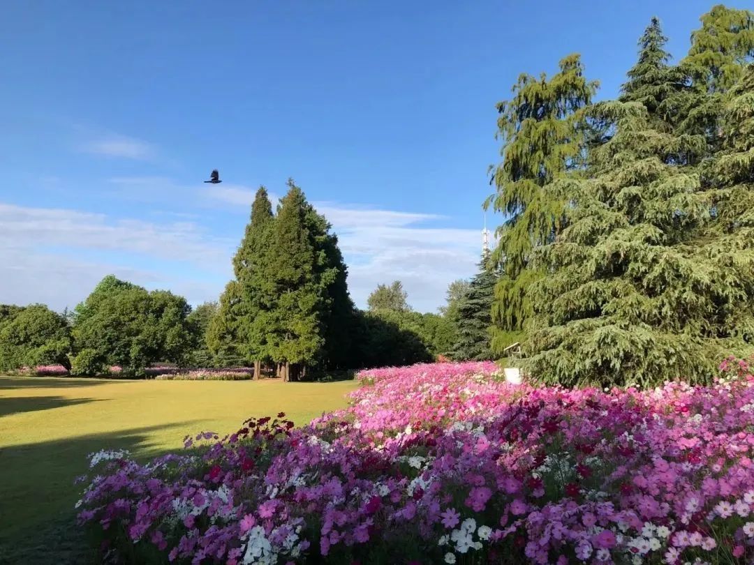秋高气爽,漫步在上海滨江森林公园的花丛间,波斯菊在风吹落叶的沙沙声中盛开着。上海滨江森林公园秋季花卉景观整体围绕公园入口、中心主园路以及一级园路花境景点展开,总体上以红、黄色系为主。