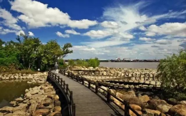 吴淞炮台湾国家湿地公园位于宝山区东部,漫步亲水木栈道,你可以眺望对岸的浦东新区,天气好的时候,一江之隔的长兴岛也能够映入眼帘。绵延的滩涂湿地上,不仅有芦苇等百余种湿地植物,还可以在此地看到各种鸟类~