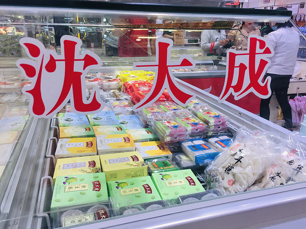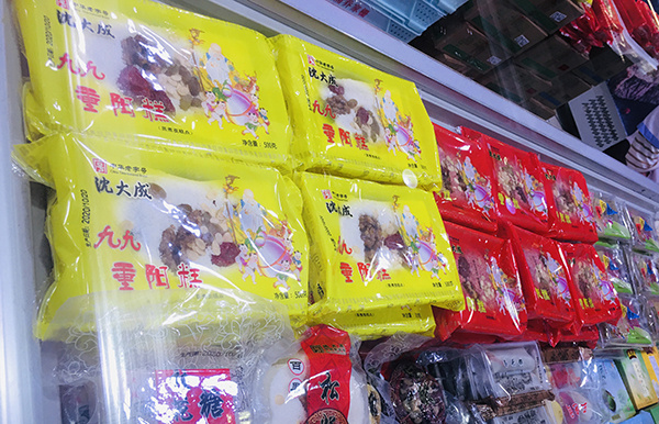 “沈大成”是著名的中华老字号,它创建于光绪六年,至今已有130余年历史。位于中环百联的“沈大城”专柜,重阳糕摆得满满当当,前来先购的市民也是络绎不绝。