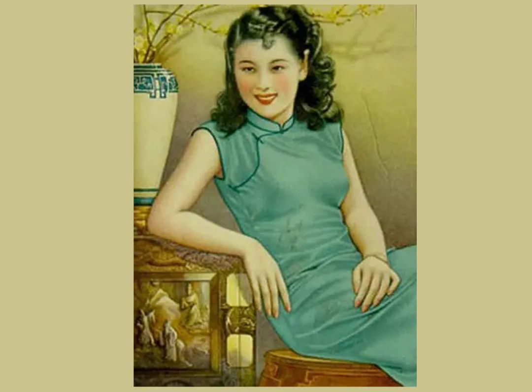 ▲“爱国蓝”布旗袍