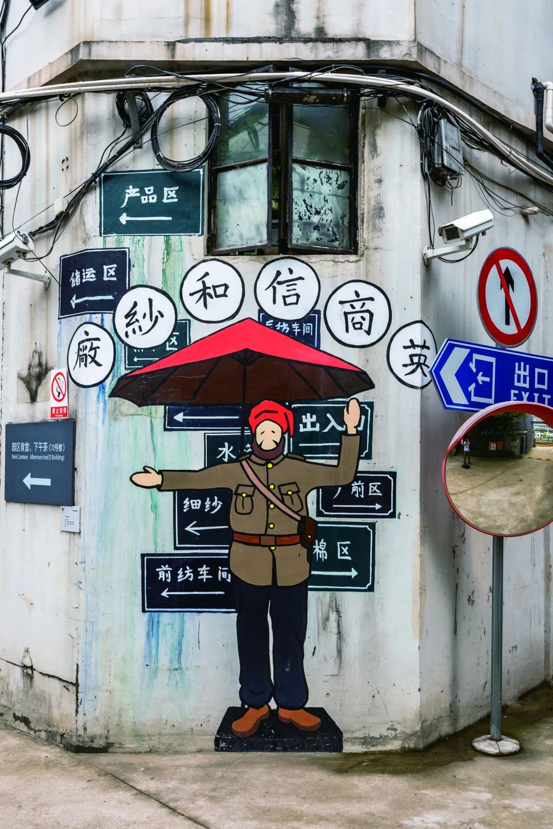 ▲园区内以纱厂时代为主题的墙绘随处可见