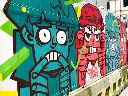 涂鸦(Graffiti)意为在墙壁上随意涂写的图案或画作。起源于上世纪60年代纽约布朗克斯、布鲁克林和哈林的涂鸦,最初只是一些帮派少年为占据地盘而胡乱涂写的图案。1970年代传入欧洲之后,涂鸦逐渐撇清帮派意识,成为城市街头艺术,并迅速爬上全世界各个角落的地铁、旧厂房、地下通道、街道。