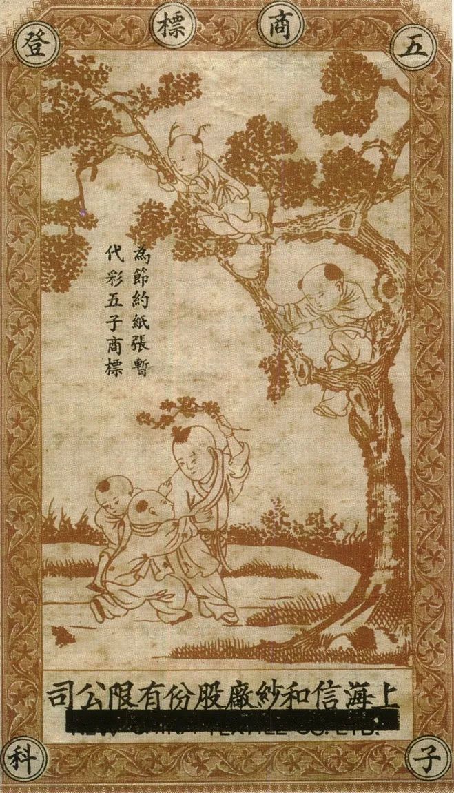 ▲信和纱厂“五子登科”商标
