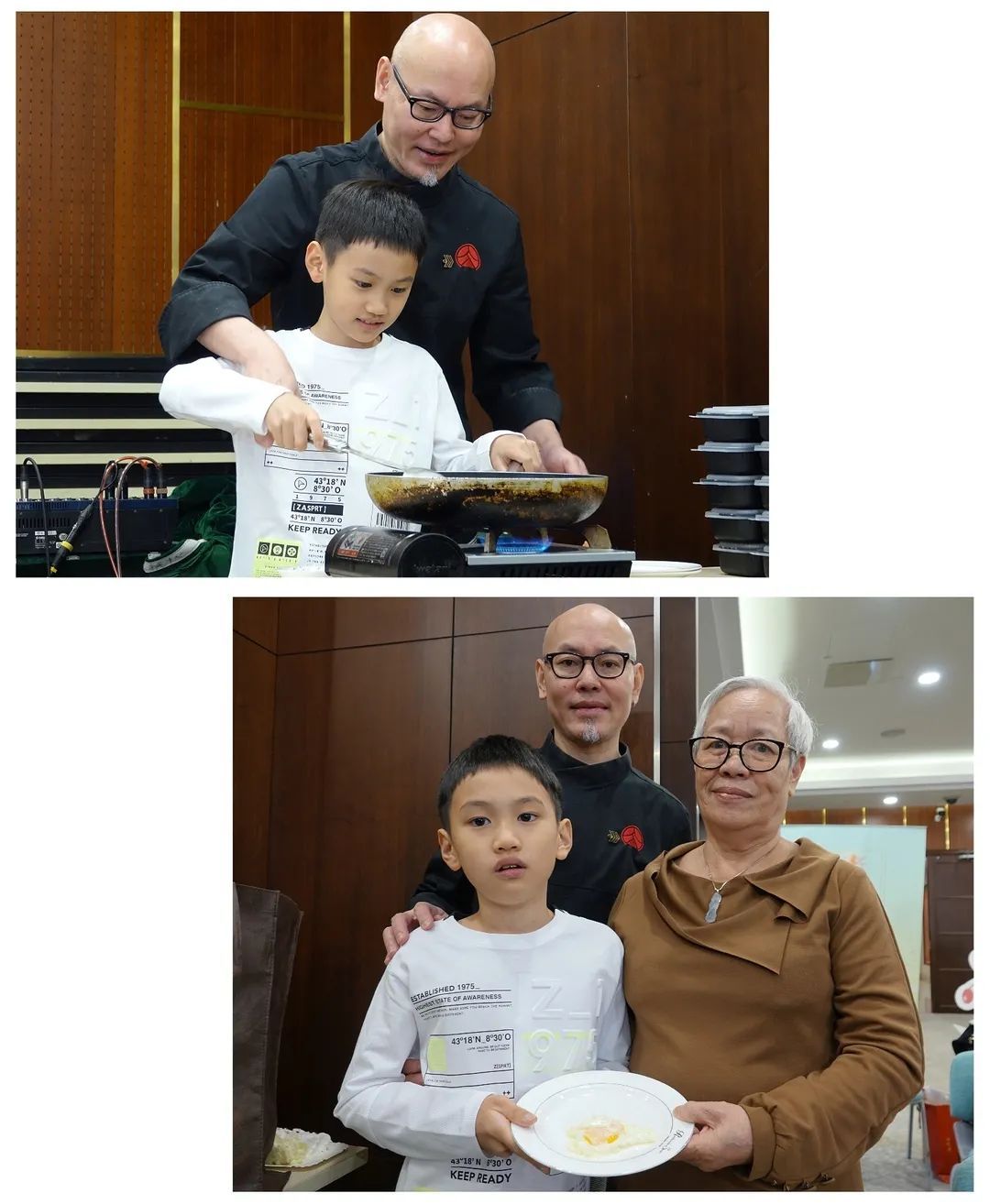 来上海打拼的网红餐厅“光头匠”老板陈先生带着妈妈、妻子和儿子一起来参加活动,小朋友现场学煎荷包蛋孝敬奶奶。他们一家早就把上海当作了自己的家,陈妈妈还屡次获得所在街道的荣誉称号。