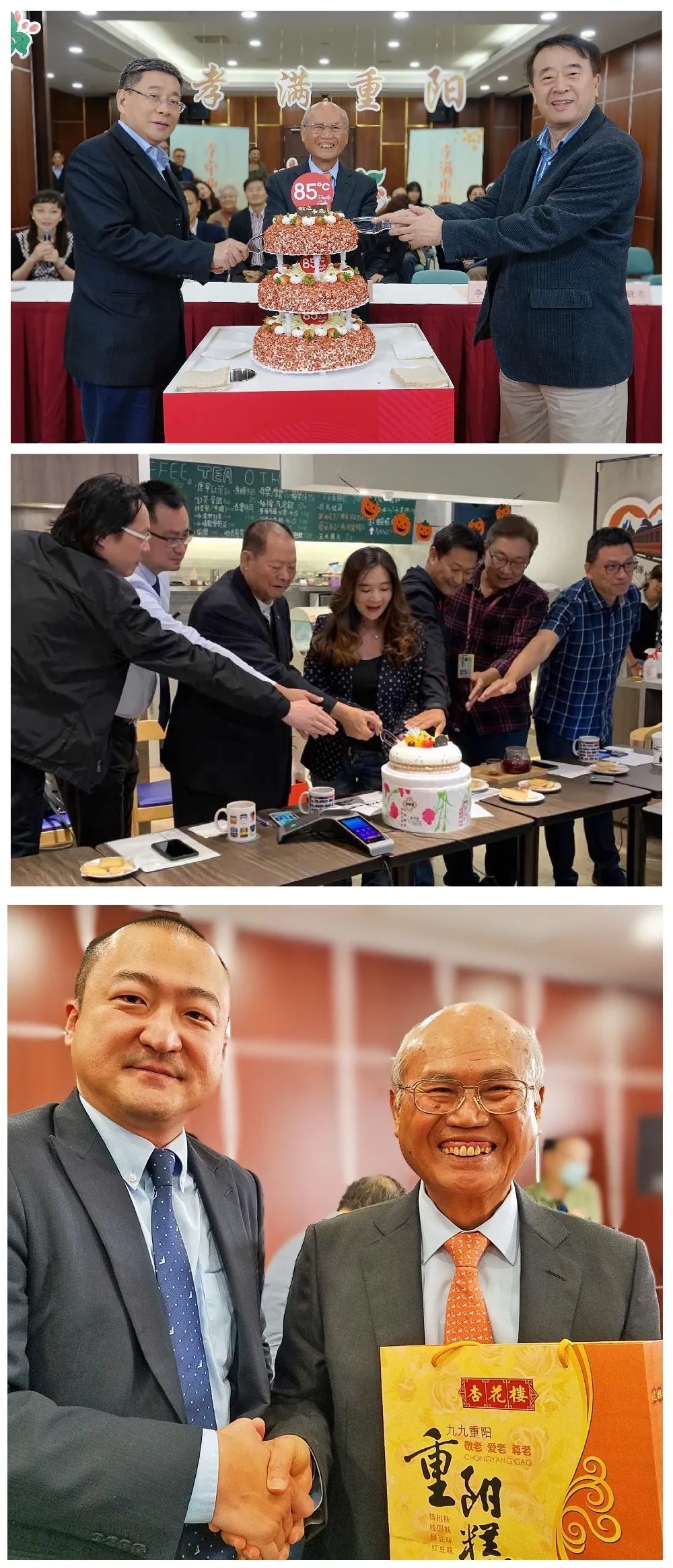 上海台北两地嘉宾为社区老人献上重阳糕,祝福大家平安健康!