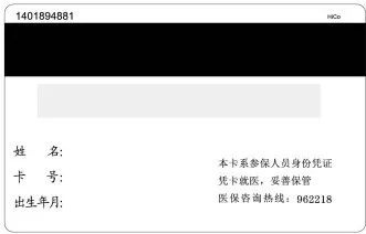 社会保障卡蓝底国徽图案为卡反面,芯片、银联标识、参保人主要信息为卡正面。