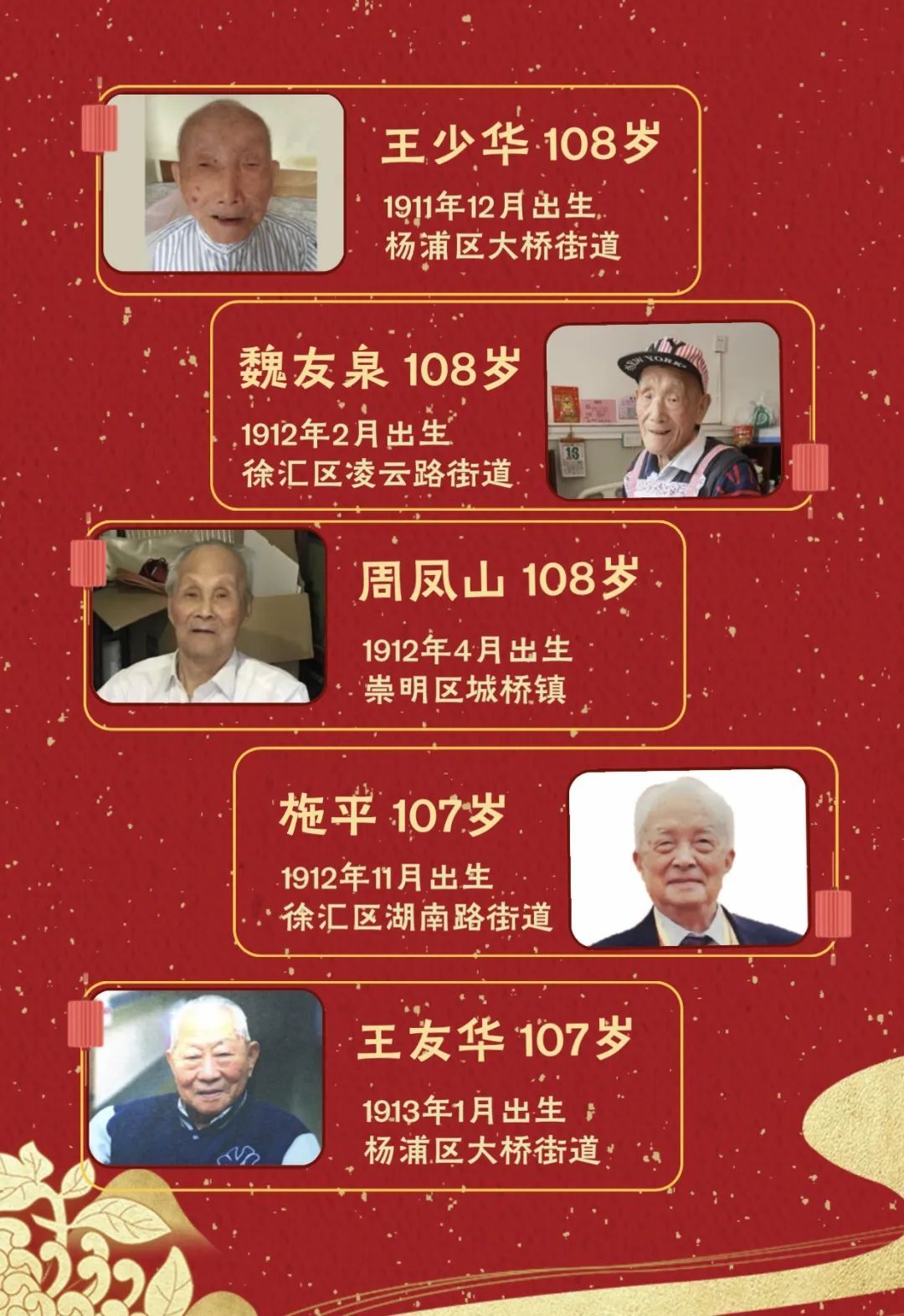 6、王少华(108岁,杨浦区大桥街道)