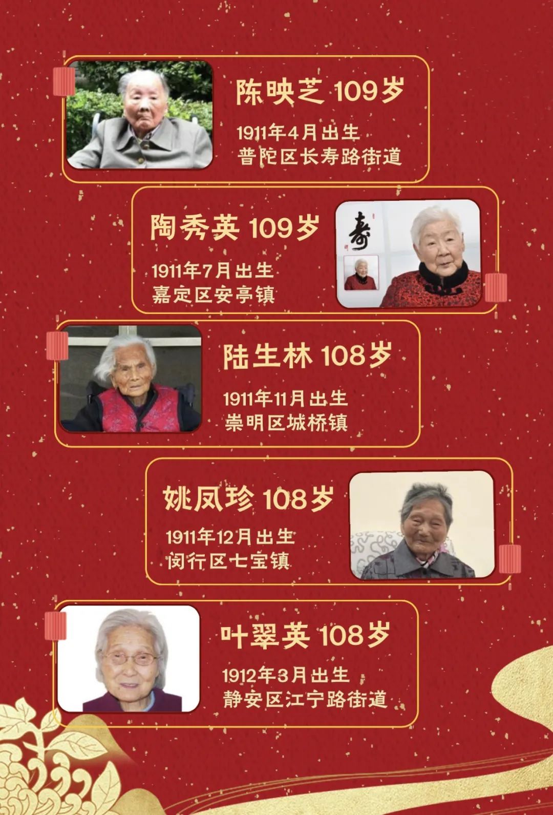 1、徐素珍(113岁,黄浦区瑞金二路街道)