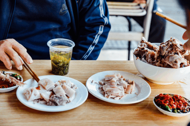 这里的羊肉以白切为主,顾客可以根据喜好要偏肥或偏瘦的,羊肉酥而不烂,一口咬下去,丰腴而又柔滑,每一筷子夹下去都小心翼翼,再配上一小碟自家调味的葱花酱油佐味,瞬间让味蕾打开,独特的酱香让羊肉的口感更为丰富,回味无穷。