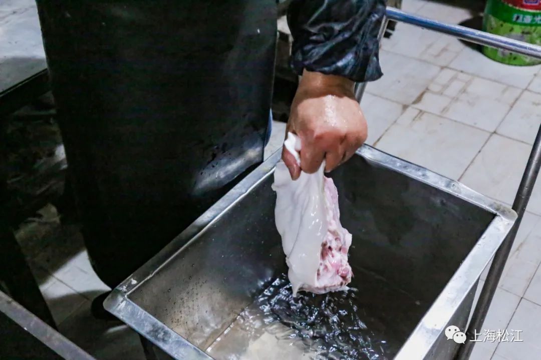 这里的羊选取的是江浙一带的羊,老板一家每天凌晨1点半就开始忙起来了,开始将宰杀好的羊分部位切好,之后刮毛把不要的部位修掉,“然后把血水洗掉,这一步是很重要的,许多人说羊肉有膻味就是因为血水。”