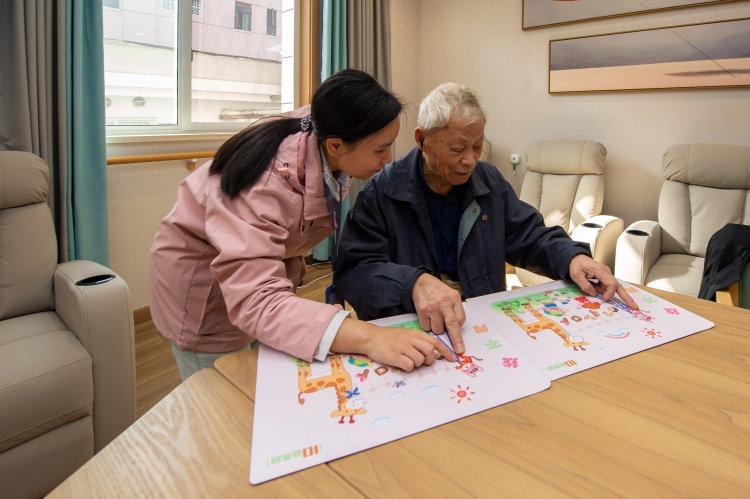 “旗舰店”日间照护中心工作人员王依文告诉记者,中心目前有35位日托老人。早上,中心会派车把老人接过来;在中心的时间里,护理人员会带着老人做操、玩益智游戏,帮他们按摩……度过丰富的一天后,再送老人回家。