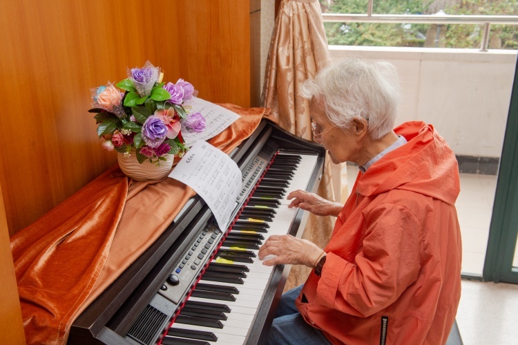 今年93岁的华淑英老人,就是其中之一。每天到日间照护中心来,是她最开心的一件事。曾经当过幼儿园老师的华淑英喜欢弹琴,虽然动作已经不像年轻时那样敏捷,但依然能赢得其他老人和护理人员的掌声。