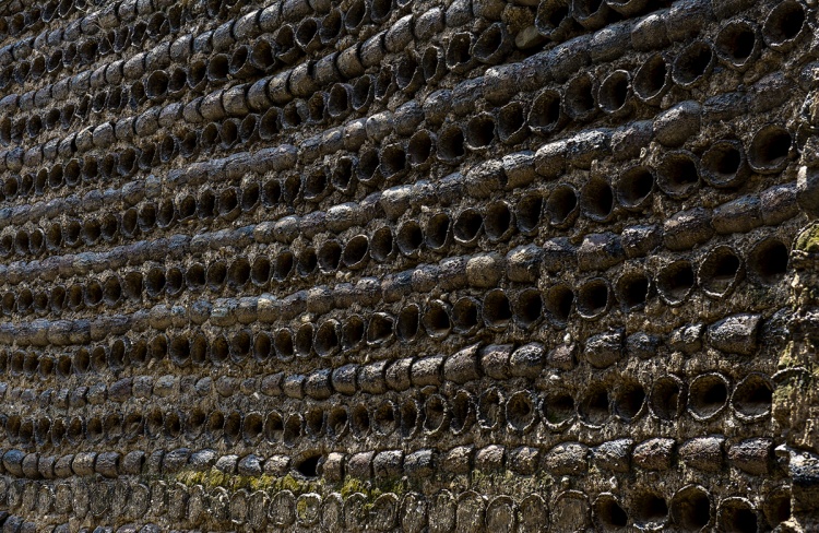 砥洎城铁壁铜墙的奥秘,就是用废弃的坩埚创造了变废为宝的中国建筑史奇观。砥洎城南面外墙用青砖垒砌,临河东、北、西外墙选用了石灰石和天然河卵石,而内墙却采用当地炼铁废弃不用的坩埚。这种坩埚砌墙后,村民们又用炼铁渣和石灰调浆,将城墙一层层碾铺后用铁水浇实,冷却之后形成了无缝的铁质墙体,水火不侵,还防腐蚀,坚固程度完胜今天的钢筋水泥。这种被誉为“蜂窝城”或“坩埚城”的城墙,外观与其他城墙无异,但一进入城内,就会发现内城墙上密密麻麻整整齐齐排列的坩埚孔洞。