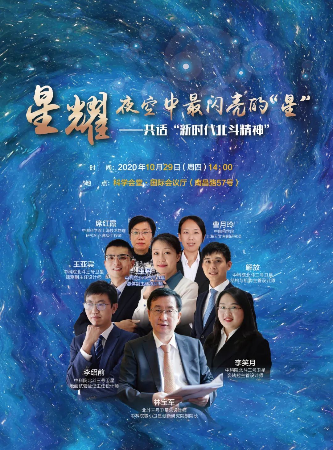 10月29日(本周四),上海市科协邀请中科院北斗导航卫星创新团队在上海的部分成员来到科技工作者之家——上海科学会堂,为大家讲述团队十年铸星、梦圆苍穹的故事。