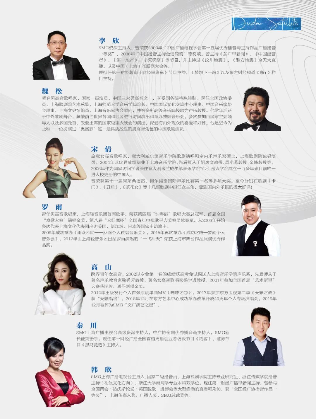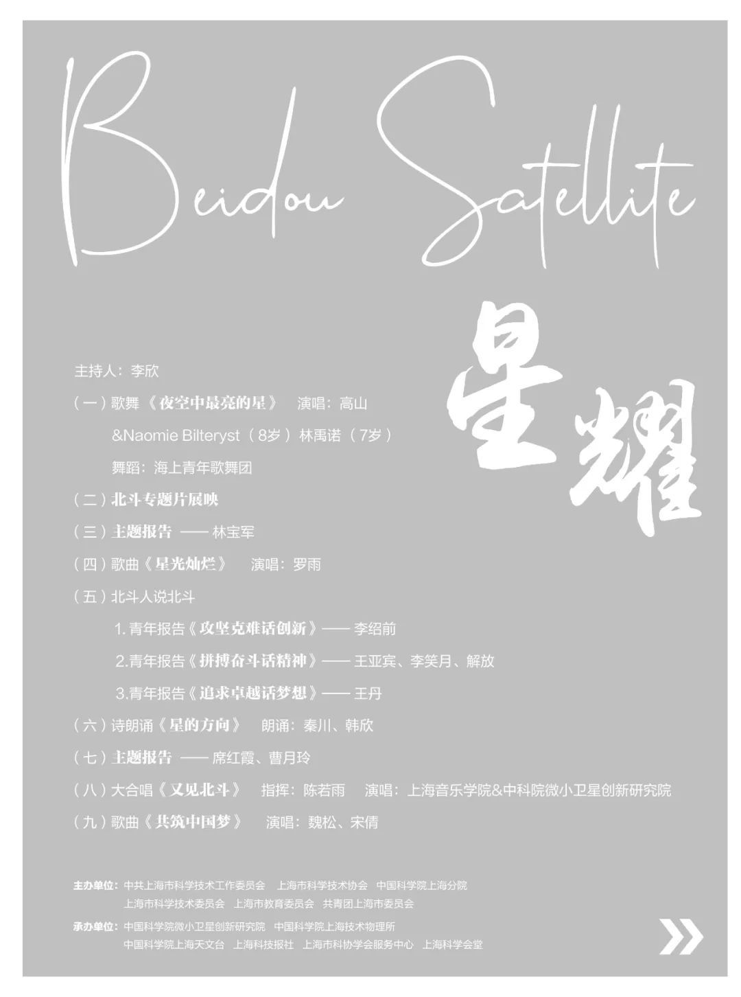 乍听宣讲会,也许你下意识地会蹦出“正经”、“古板”之类的印象,打住!这可是一场与“星空”有关的宣讲会,仰望星空而生的浪漫可是印在中国人的基因里呢,自古与星星有关的诗就不胜枚举,还有浪漫的故事、悠扬的乐曲……所以,在周四的这场宣讲会中,我们既有感人肺腑的故事,也有动人心弦的歌曲;既有讲述北斗的专题片,也有歌颂北斗人的诗朗诵。尤其会让你大吃一惊的是,北斗人不但是科研的一把好手,文艺表演也小有两把刷子。所以,我们也诚挚邀请您,通过直播一同加入到这场别开生面的宣讲会中。