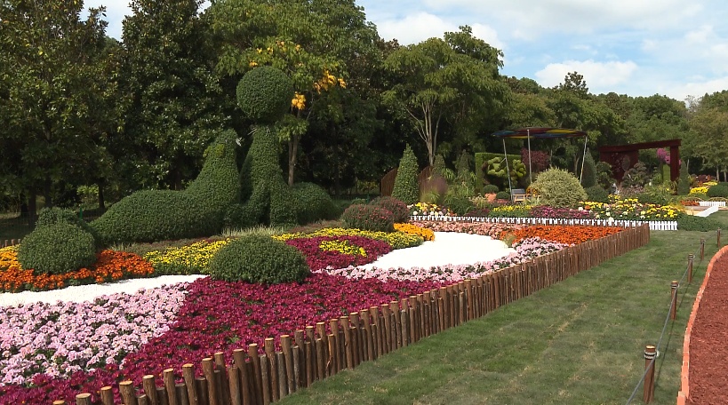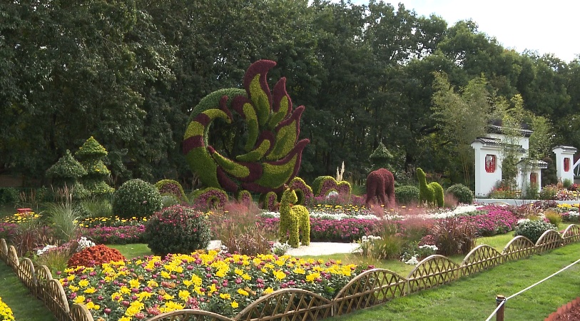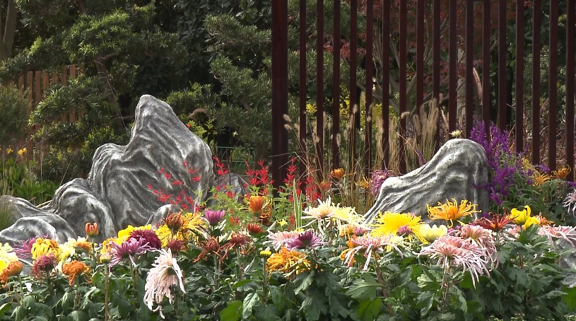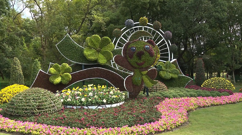 憨态可掬的熊猫绿雕、颇具禅意韵味的花境,典雅幽静的古典花园……大草坪上布置的八组菊花造景,每一组都让人流连忘返。