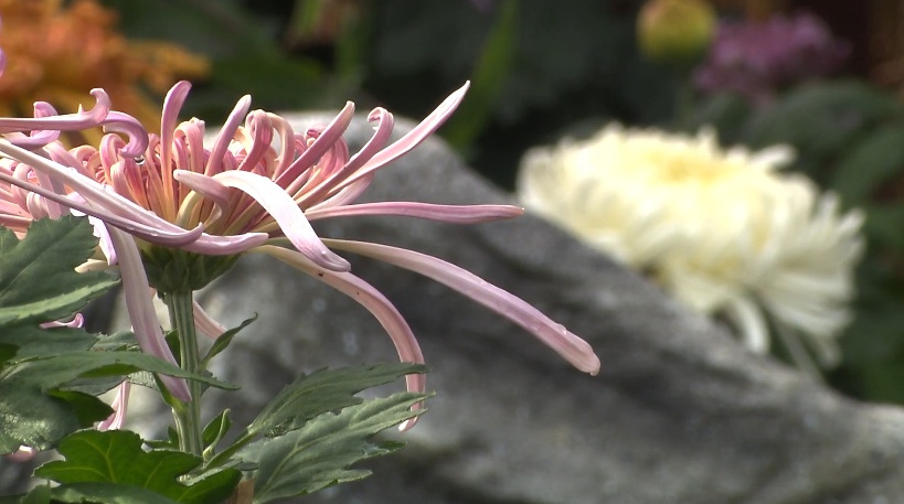 今年的精品菊花展首次移师户外,香樟广场上,上有黄叶片片,下有彩菊朵朵。