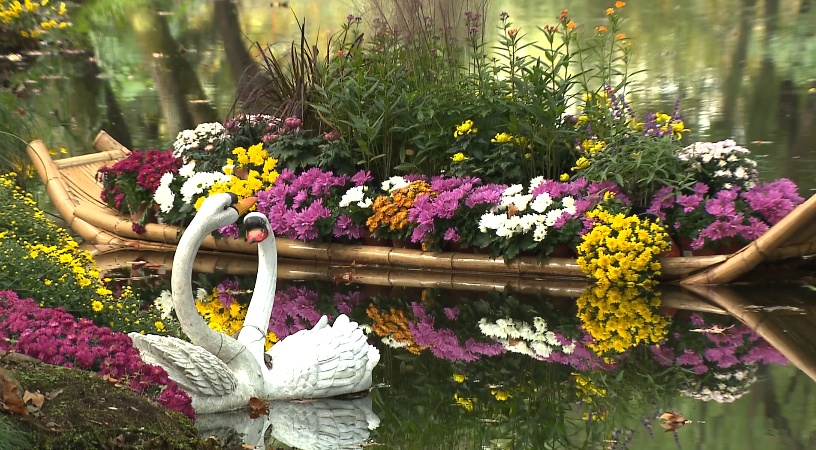 还记得红遍魔都朋友圈的共青森林公园的“莫奈花园”吗?如今它又重装上阵了!以林间花溪为主题,这里的菊花花境充分利用公园优美的水系环境,湖中木船满载菊花,水中映现天鹅倒影。