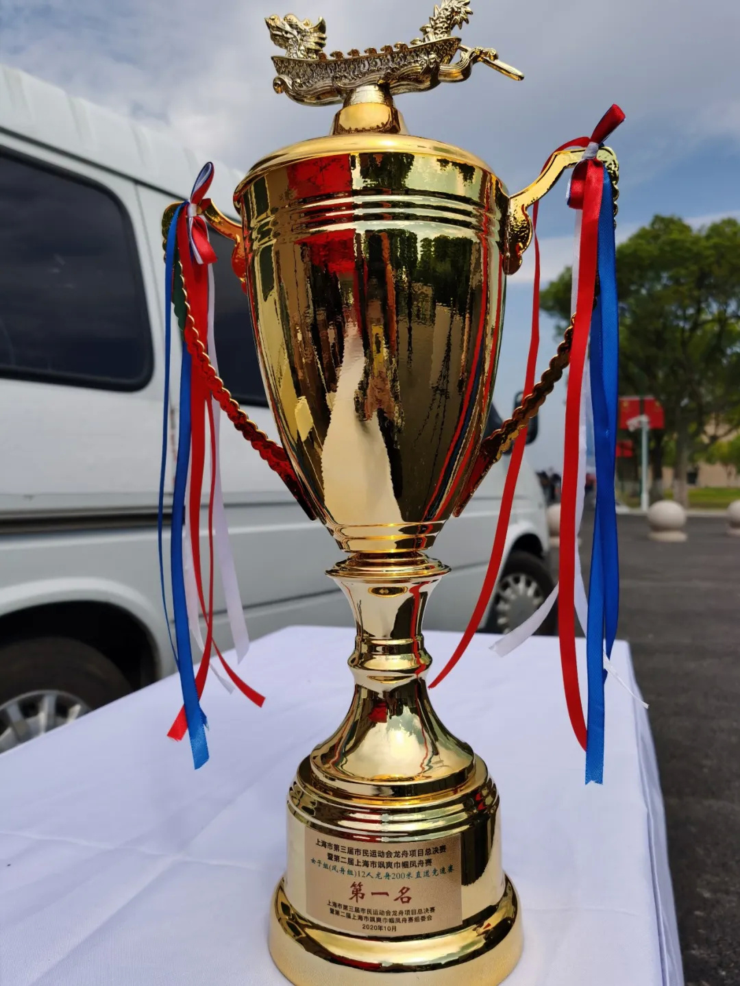 金山山阳龙舟队通过艰苦训练,顽强拼搏,奋力争先为金山区在上海市第三届市民运动会上捧回了一座沉甸甸的金杯!