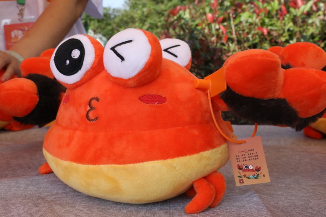 是一只在崇明绿华土生土长的崇明清水蟹,不仅形象灵动可爱,更是饱含了美好的寓意:背上一铠甲,寓意富甲一方;鳌足二大钳,寓意双手来钱;步足八条腿,寓意八方来财。(拉至文末参与活动送吉祥物)