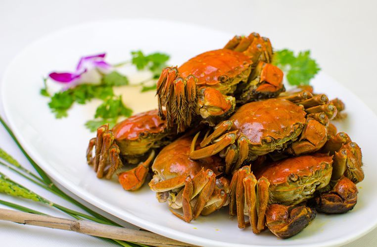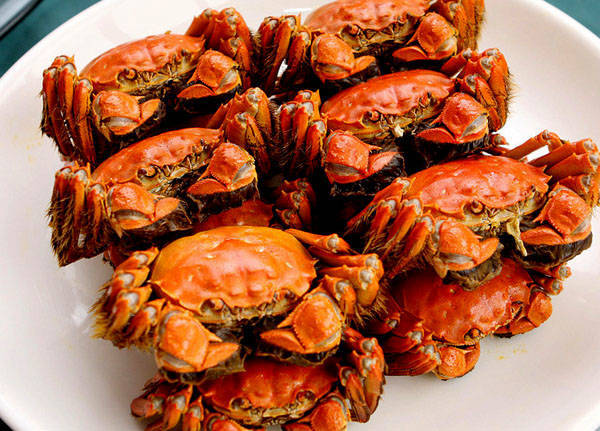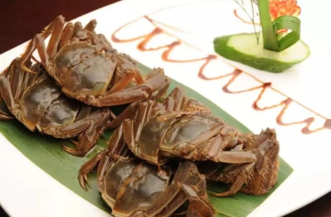 清蒸崇明清水蟹:大闸蟹吃法中属清蒸清煮最能保持其原汁原味的鲜美。在蒸螃蟹时,可以加少许葱、姜、料酒等调味提味,还可在螃蟹底下垫上几片紫苏叶,以减少螃蟹自身寒性。清煮螃蟹时,一定要凉水下锅,这样蟹脚才不会脱落,在水开后至少要再煮上十五分钟左右,蒸煮熟后的螃蟹周身通红,色味诱人。