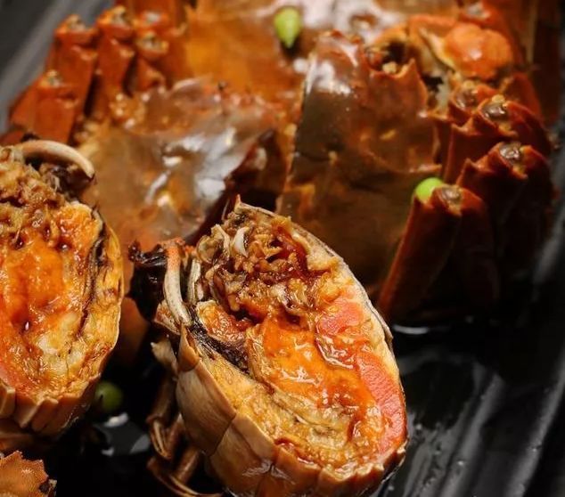 熟醉蟹:蒸熟的蟹肉经过酒醉后,鲜嫩甜滑,晶莹的膏黄肥腴绵润,带有一点黄酒的香气,不仅拥有了醉蟹酒香四溢的原有优点,同时更避免了生食螃蟹带来的肠胃负担。用黄酒抵挡了螃蟹本身的寒凉,真正做到了让人久食而不伤身。