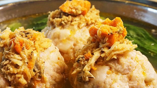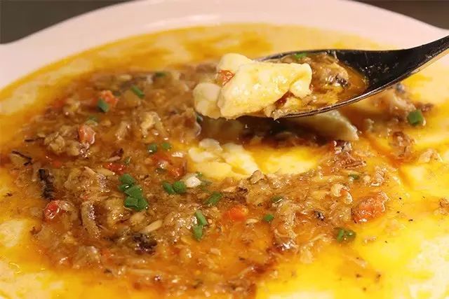 蟹粉炖蛋:蟹粉与蛋,鲜甜与嫩滑,配之更觉相得益彰,舌尖融化的感觉,美妙至极,印证了那句“白似玉而黄似金”,比起一般的炖蛋,更多一分贵气。每一碗的底部都是足量的蟹黄!炖蛋完美的吸收了蟹黄的精华,挖上一勺,纵享丝滑~