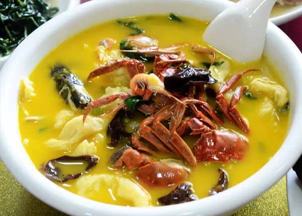毛蟹面疙瘩汤:一般为崇明清水蟹、长江虾、蛤蜊,再配以小青菜、西红柿、木耳等,同样是对切的螃蟹,与配料煸炒后,加入熬煮的面疙瘩汤中炖制。这道美食的重点在于汤,汤汁吸收了清水蟹、鲜虾等的鲜味,再加上青、黄、绿相间的靓丽色彩,让美味在舌尖徘徊,久留不去。