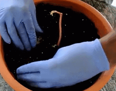 2、种植橘子的土壤要选择疏松透气性好的,将橘子籽尖头朝上埋入土壤中,不用完全埋入;浇水。
