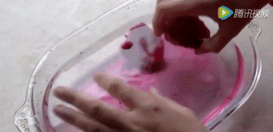 1、用勺子把火龙果的部分果肉挖出放水里,用手把果肉碾碎,分离果肉和种子,继续在水里泡一晚。