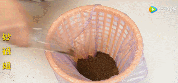 2、准备一个新的垃圾桶,套上平常用的塑料袋,防止泥土掉出来。
