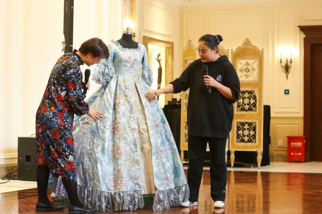 活动现场,一些平日难得一见的舞台服饰被一一展示在观众面前,从《睡美人》《哈姆雷特》的欧式宫廷风到《花样年华》的极致海派风情,各色风格呈现令现场观众应接不暇。围绕这些剧目服饰的创作细节,两位嘉宾将艺术、时装、历史等视角多元融入,将芭蕾服饰之美以生活化的语言传递解读。