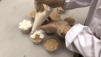不同于我们的想象,其实一块栗子蛋糕的正常制作工序并不复杂。将蛋糕放入蛋糕盒中铺底,加入糖水及调味好的栗子粉,挤奶油,再盖好盖子。一个栗子蛋糕便成型了。可以从厨房间,送到西饼屋进行售卖了。是吧~听上去很简单的样子~但准备工作却远比想象的要复杂得多,时间之长,心思之多,令人不由惊叹!