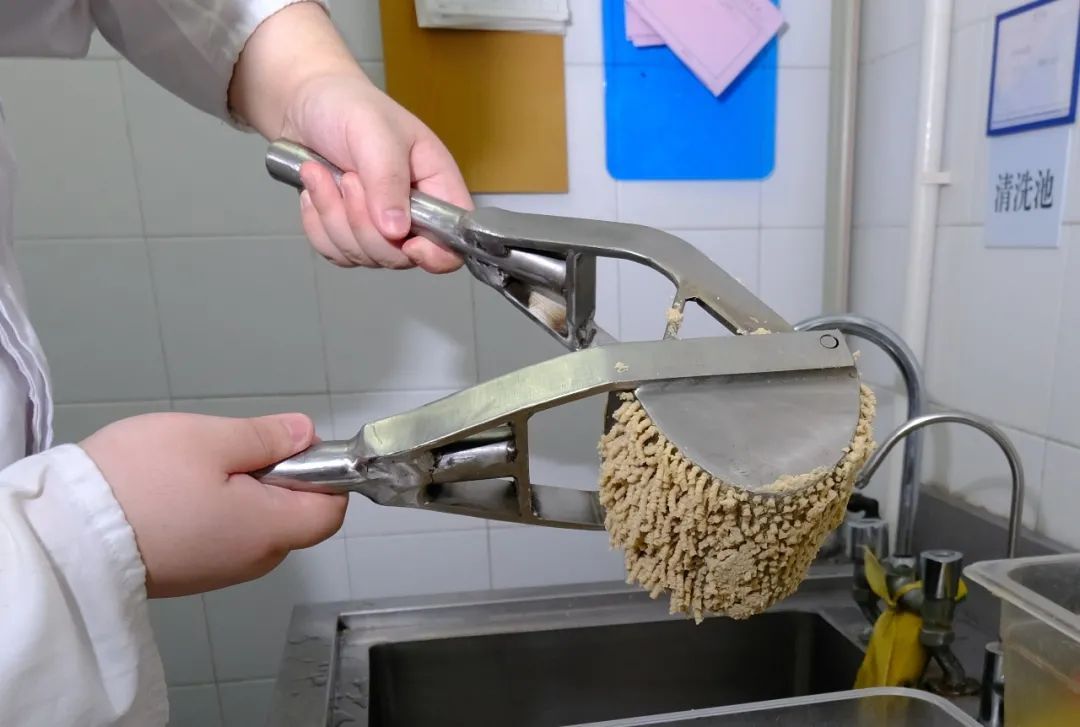 压栗子要靠臂力。工具很简单,操作间也不大。考验的只有制作者的耐心。应师傅一坚持就是几十年,直至如今。当然这份手工艺也并非一成不变。经过多年的实践,应师傅对栗子蛋糕的改良与日俱进。为了更适合国人的口味,他也将栗子蛋糕的甜度进行了适当下调,形成了如今的风味。