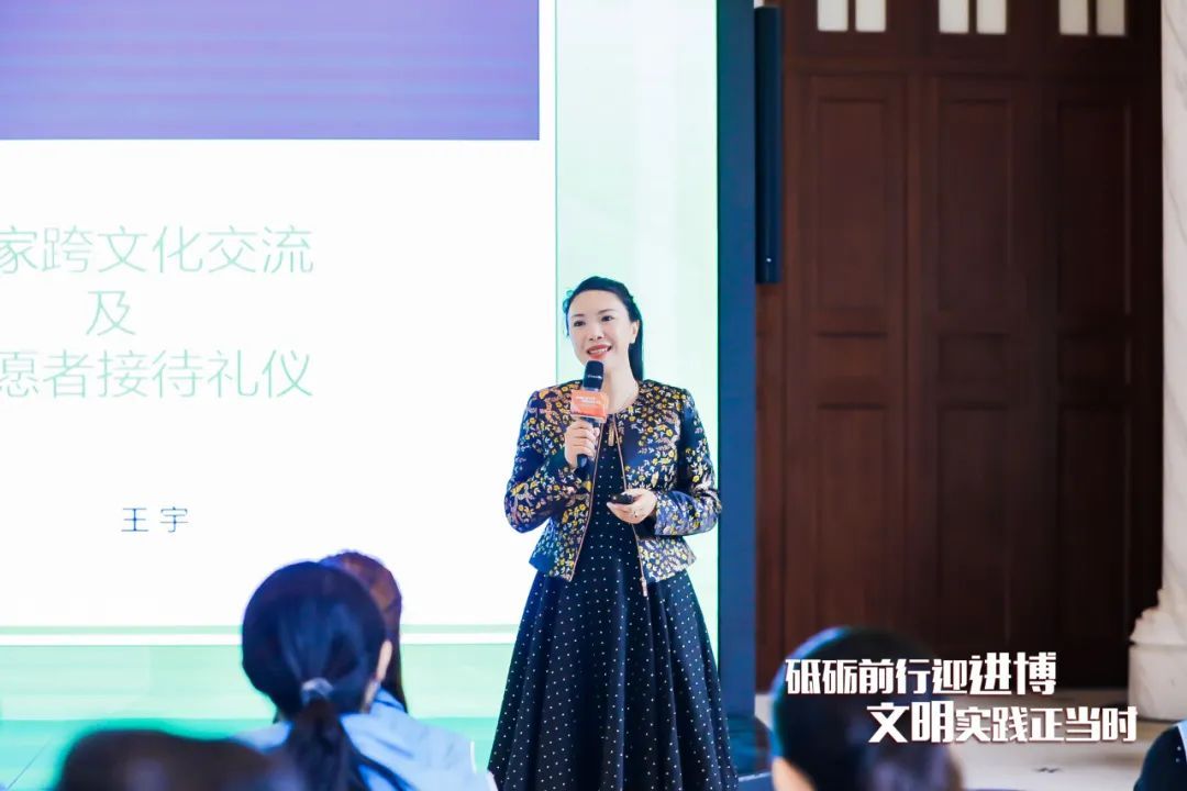 ▲上海师范大学副教授王宇重点讲解了国家跨文化交流及志愿者接待礼仪