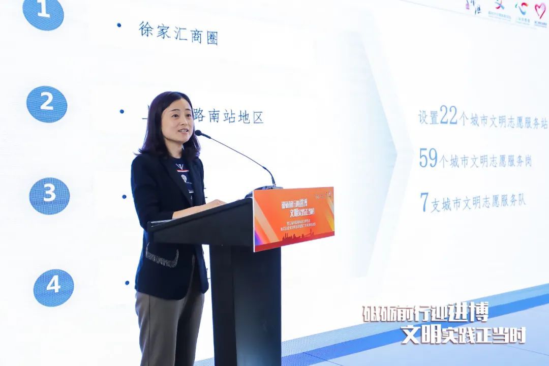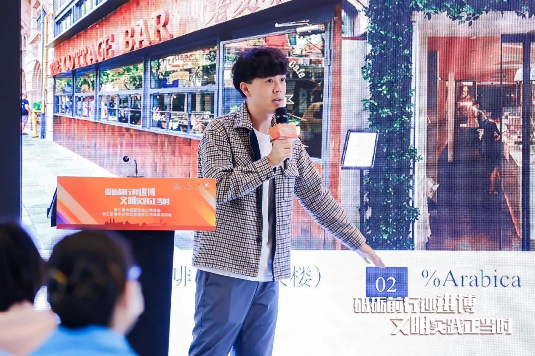 来自漕河泾街道社区志愿服务中心的志愿者石小倩分享了去年进博期间的志愿服务经验,用青年志愿者将两位老人安全送到车站、帮助阿姨办理临时身份证等暖心小故事,鼓舞广大“小叶子”们为进博会贡献力量,以真诚微笑扮靓徐汇志愿者的美丽风景线。
