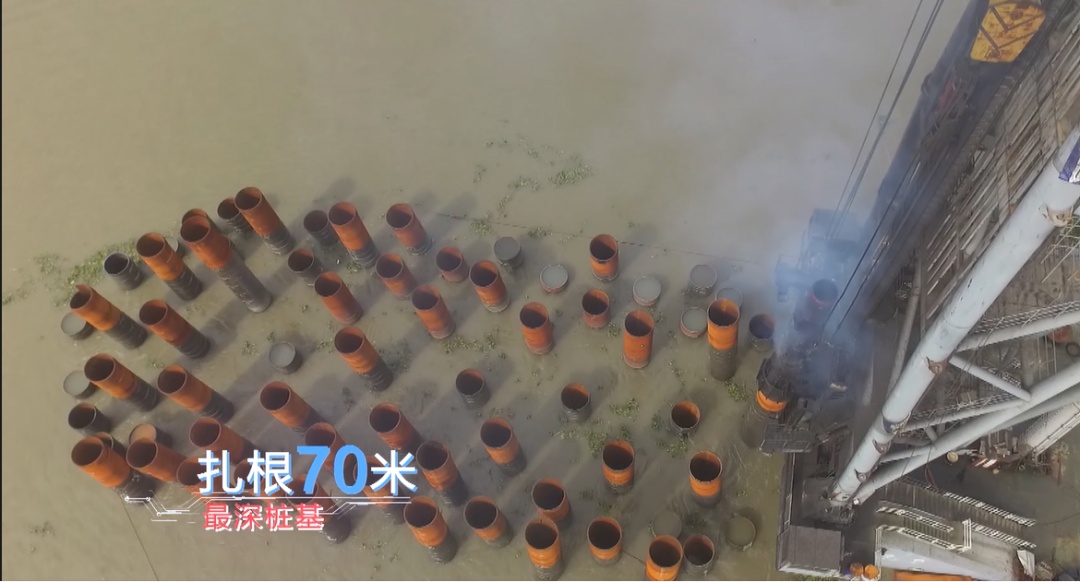 该桥在黄浦江中心设墩,为了减少对航道的影响,主桥基础采用承载力更强扎根更深的1.5米大直径钢管桩。每根钢管桩长度达70米,竖起时相当于25层楼的高度,重量达60吨。70根70米长的主墩钢管桩沉桩时总锤击数高达35万次,为大桥“扎根”黄浦江打下坚实基础,创造了上海市内河航道桥梁桩基深度和难度的新纪录。