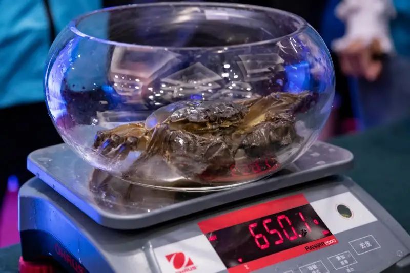 “蟹王”重657.7克(右),“蟹后”重426.1克(左)