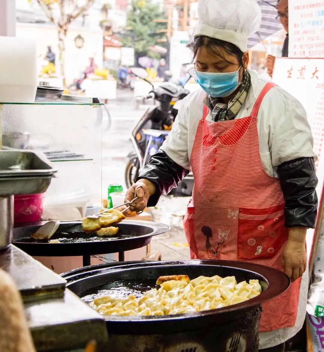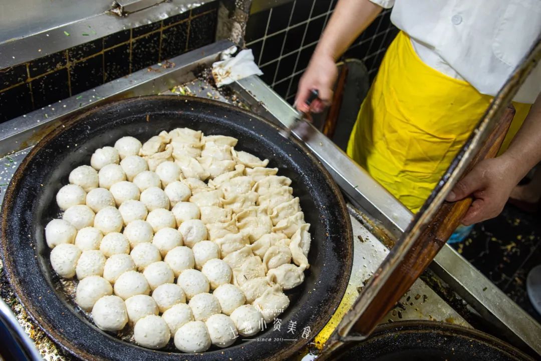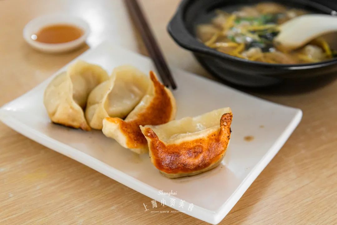 胡记锅贴近年来开了不少分店,中山北路上的老店,顺着锅贴的香气就能找到。