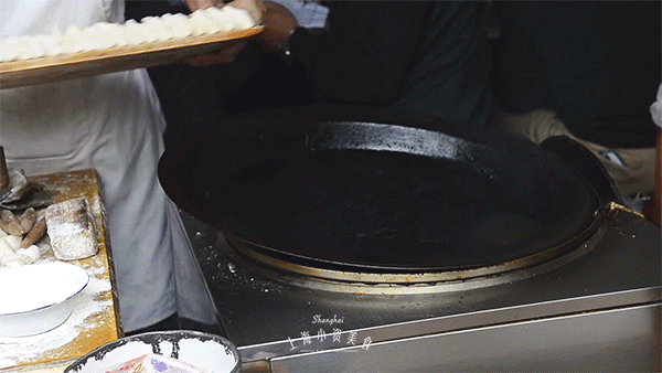 除了水和油以外,锅贴几乎没再加其他的料,看师傅们包锅贴、下锅贴,也是一种视觉享受。