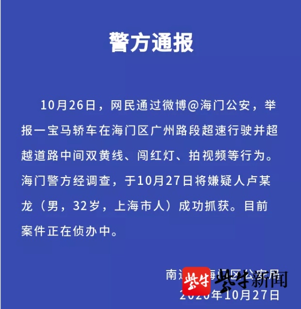 记者10月27日晚10点从江苏海门警方获悉:这名驾驶人已经落网!