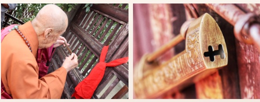10月27日下午,101岁的圆山大长老与出生成长在龙华塔边的徐汇居民代表、年过七旬的王华兴,共同开启龙华塔园门锁,随着第一根桩落定塔前,为期半年的龙华塔保养维护工程正式启动。上一轮保养维护时间为2009年。