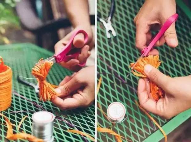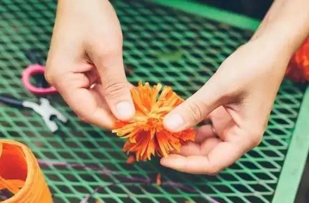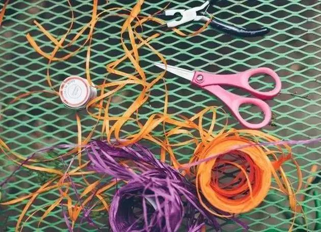 用剪刀剪开彩带,用手拨散,就是一朵彩带花球了