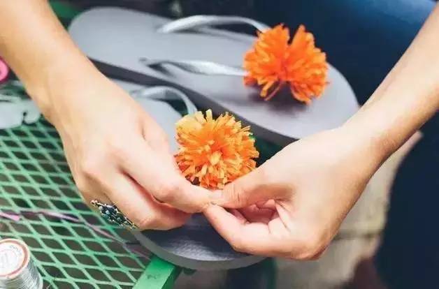 系在拖鞋上,是不是一下清新许多,清新特别,独一无二的拖鞋轻松做