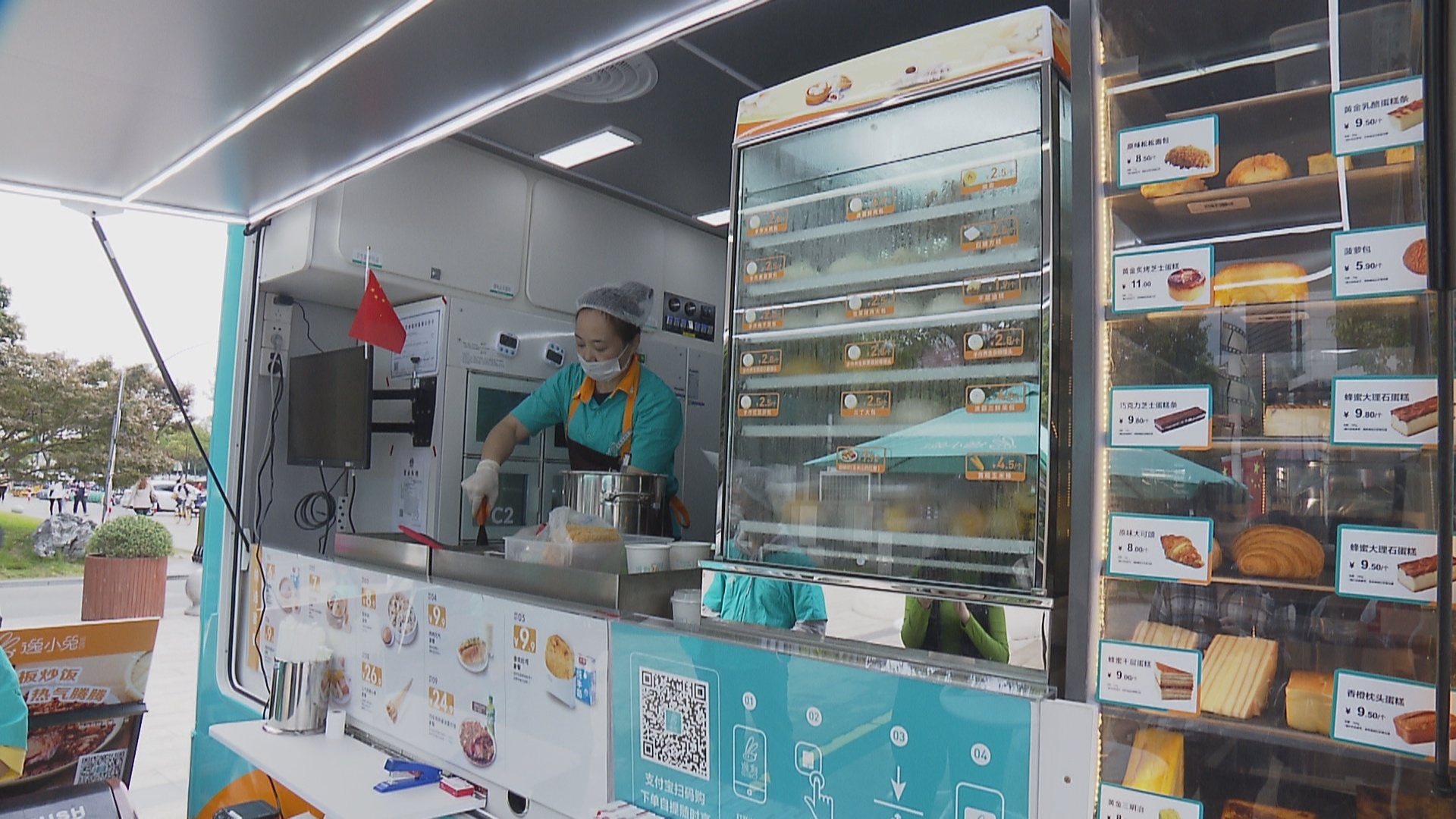 据餐车工作人员介绍,市民购买早餐既可以现场扫码下单,也可以通过逸刻支付宝小程序一键下单,选择“预点自提”。抵达餐车后,无需排队,扫码就可以从智能自提柜中取餐。早餐车配备的12个自助取餐柜,温度均保持在55摄氏度左右,保证顾客拿到手的餐品温度适宜。