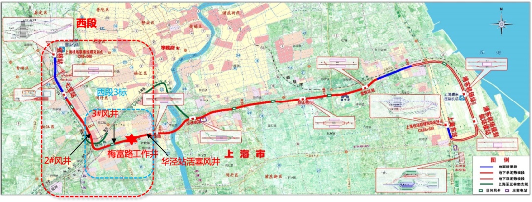 此外,机场联络线将与虹桥机场、浦东机场、铁路虹桥站、上海东站等主要对外交通枢纽衔接,一路串联起上海著名旅游景区迪士尼、国家级高新技术园区张江等明珠,还将实现与2、10、15、17等多条地铁线路换乘。