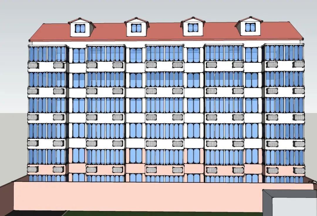4号楼的外墙效果如图中最右边的这幢楼。外墙面统一刷新,更显美观。屋顶将拆除原屋面瓦片及防水层,更换厚实的沥青防水卷材及沥青瓦片。楼道内墙面和楼梯栏杆重新刷新,线路整理归槽。